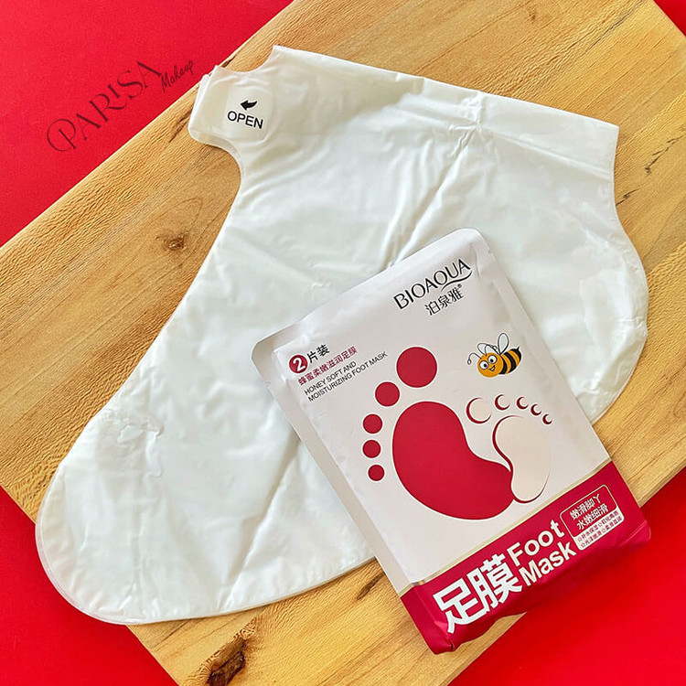 ماسک جورابی پا حاوی مواد مرطوب کننده و عصاره عسل با بافتی سبک و جذب آسان، از پوست پا مراقبت کرده و آن را مرطوب و نرم میکند. این محصول با آبرسانی پوست باعث بهبود خشکی و خشنی پوست پا شده و آن را نرم و صاف میکند.